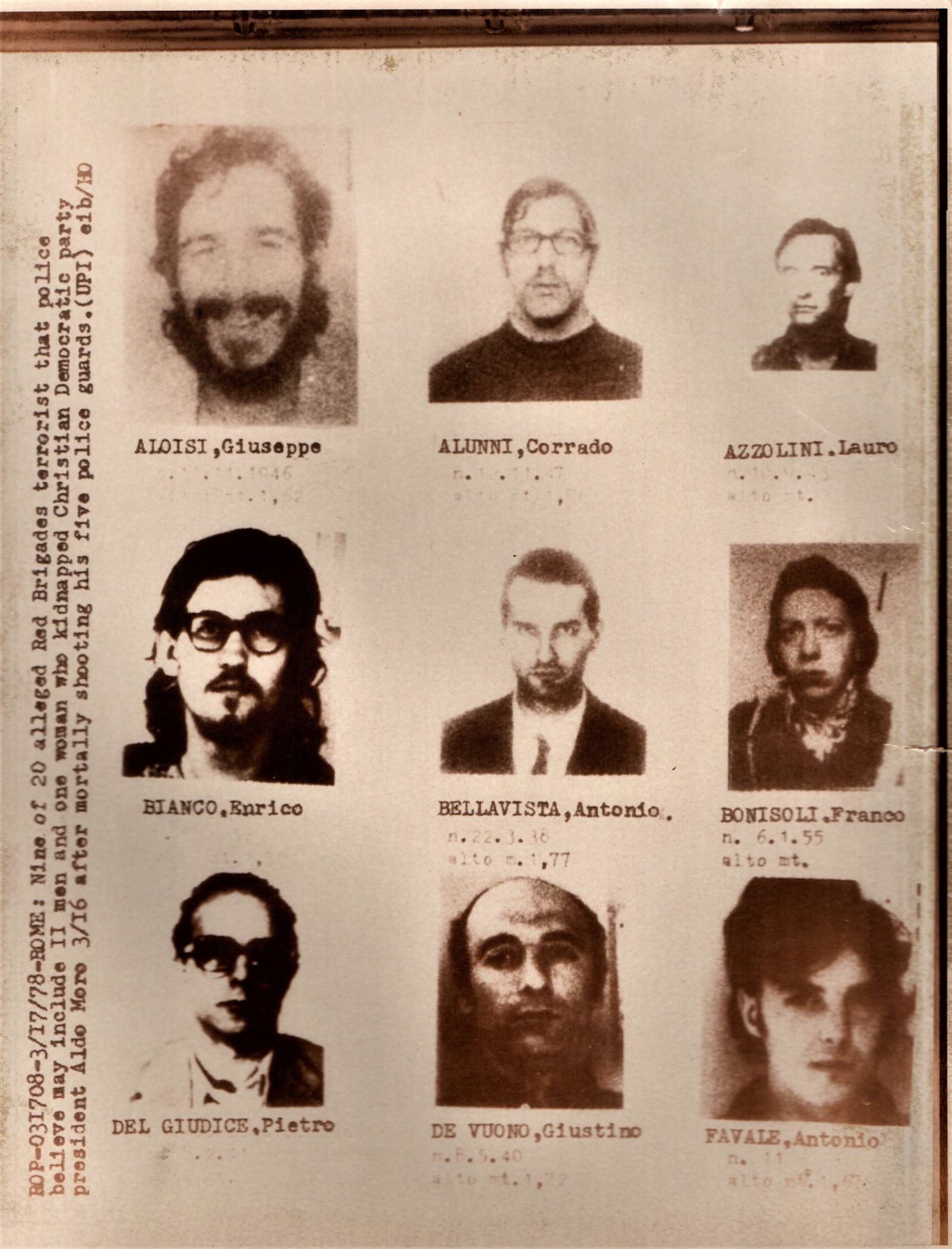 (Brigate Rosse) Foto segnaletica originale